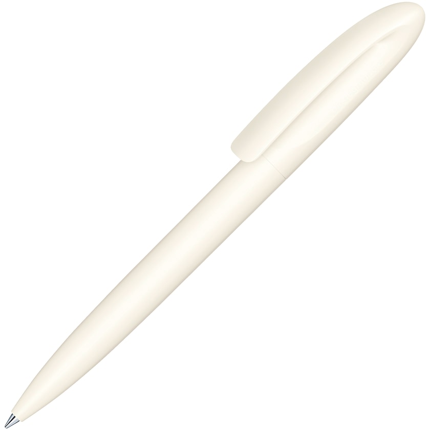 Penna promozionale di altà qualità di materiale biodegradabile. La penna ha una superficie opaca alla moda. Scegli tra inchiostro blu o nero. Nella parte superiore della penna c'è un foglia e il testo "biogradabile" stampato.