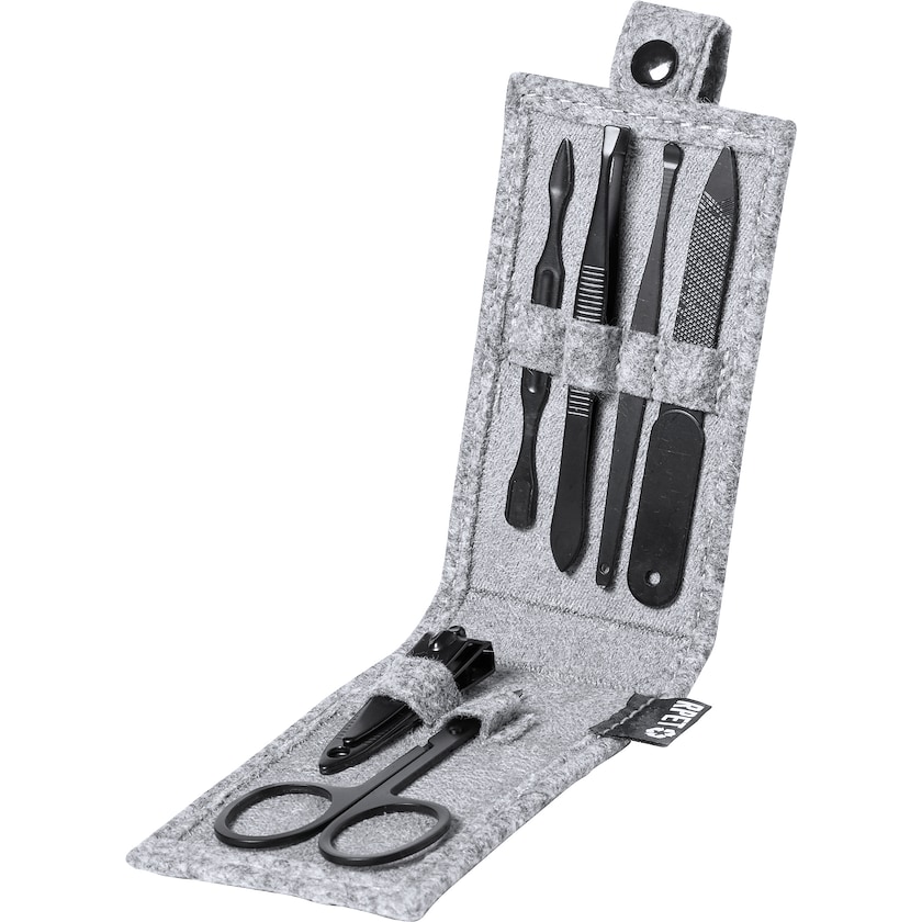 Set per manicure in custodia di materiale riciclato. Questo set da manicure contiene 6 pezzi dal bel colore nero di impatto.