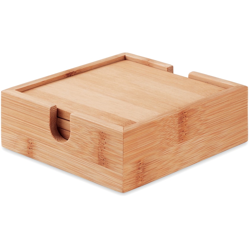 Set di quattro sottobicchieri in bambù. Il prezzo di stampa si riferisce alla personalizzazione di uno dei bicchieri oppure della scatola di bambù.
