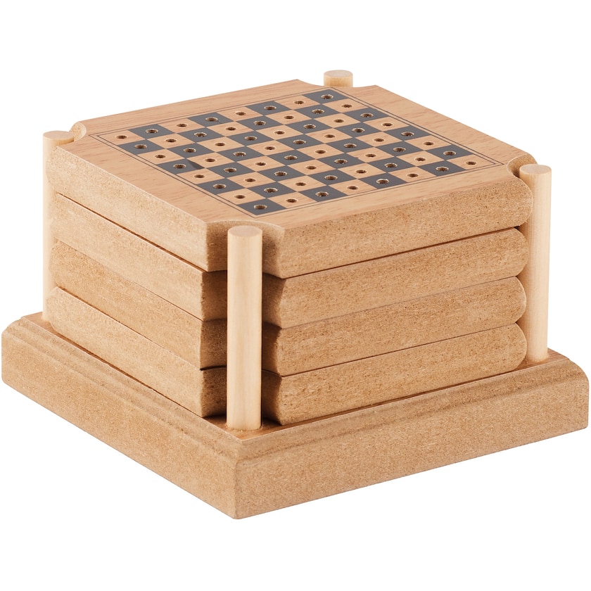Sottobicchiere e gioco 2 in 1. Il set contiene quattro sottobicchieri che corrispondono a quattro giochi diversi: tavola reale, tris, scacchi e dama cinese. Ecco l'intrattenimento ideale per grandi e piccini.