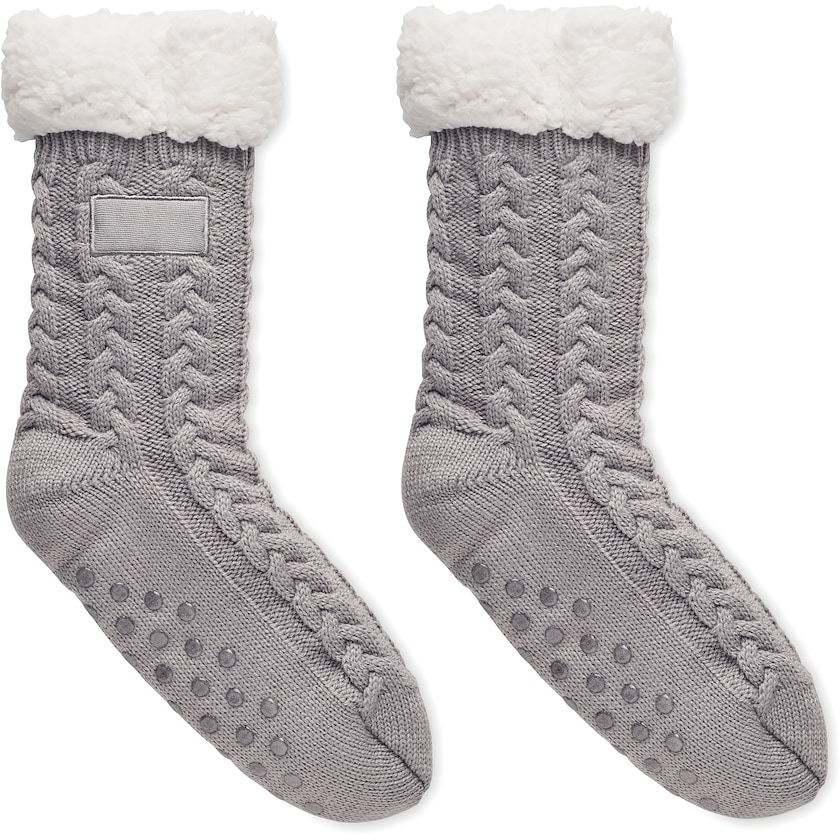 Calzini natalizi esclusivi consegnati in confezione regalo. Terranno i piedi al caldo durante durante l'inverno. Il lato inferiore è ricoperto da una superficie antiscivolo. Scegli tra due colori e mescola liberamente le taglie M e L. Il logo può essere realizzato con stampa a un colore sulla confezione oppure con ricamo su una delle calze, o addirittura su entrambe!
