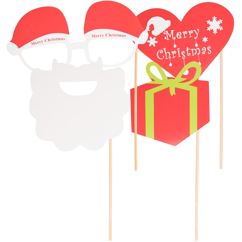 Set selfie con motivo natalizio. Rendi più divertente il tuo Natale! Contiene quattro parti e una cartolina con motivi natalizi. La stampa non è possibile.