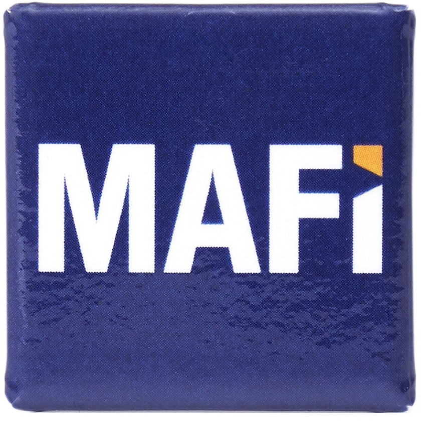 Piccola spilla promozionale quadrata. Sul retro si trova una spilla da balia.