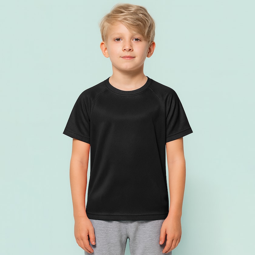 Maglietta per lo sport da bambino, in materiale tecnico. Stedman Active 140 Raglan Kids è prodotta con poliestere ACTIVE-DRY di tipo Bird-Eyelet Mesh. , Questo materiale è stato creato appositamente per l'allenamento fisico ed è traspirante e super leggero. Ed è proprio grazie a questo materiale che questa t-shirt ha un ottimo controllo della temperatura e del livello di umidità del corpo. Confezionata singolarmente in busta di plastica.