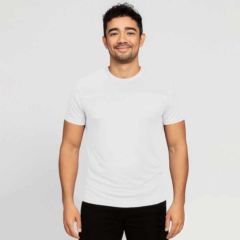 Maglietta da allenamento ecologica da uomo. Il tessuto è realizzato in 90% poliestere riciclato e 10% elastane. Il tessuto è pensato appositamente per l'allenamento e tiene al fresco anche durante gli allenamenti più intensi. Disponibile anche in versione da donna.