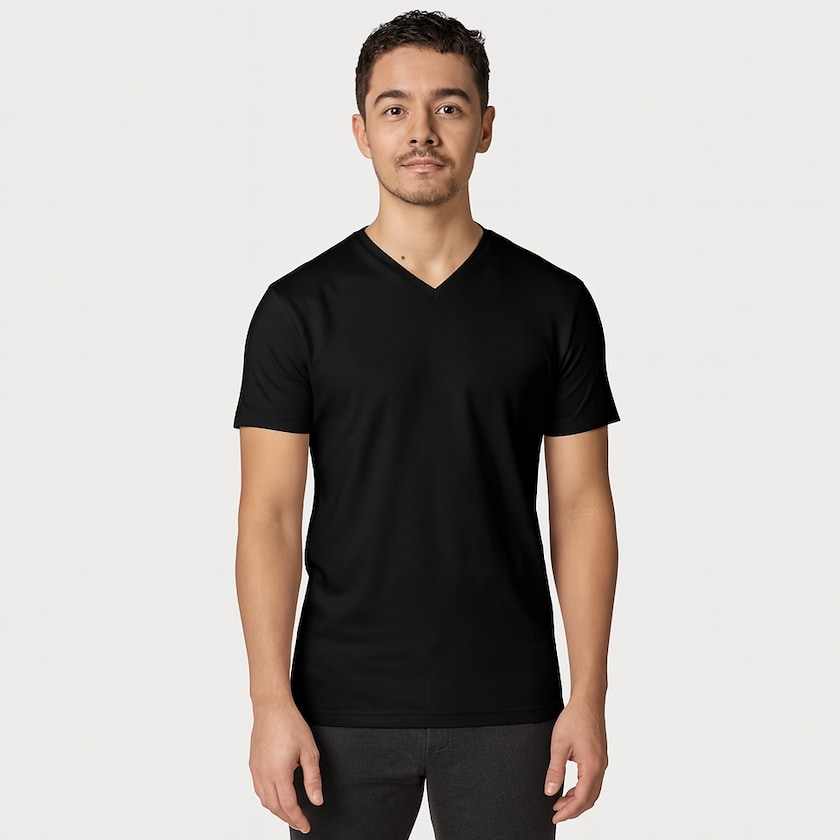 Maglietta con scollo a V in cotone biologico. Questa maglietta è realizzata in tessuto di cotone da 200 grammi di alta qualità. Il tessuto contiene anche il 5% di elastane per maggiore morbidezza ed elasticità. Disponibile anche in versione da donna.