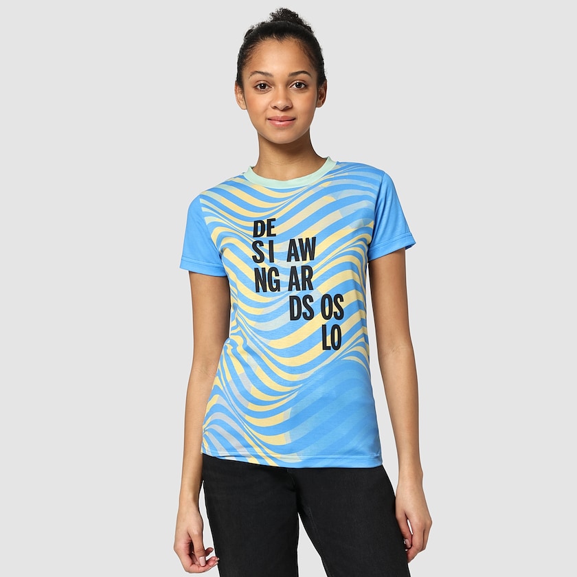 Maglietta da donna in poliestere su ordinazione con sensazione di cotone. La maglietta è prodotta in un tessuto bianco in poliestere da 145 grammi. L'intero tessuto viene stampato digitalmente secondo le tue istruzioni e viene successivamente cucito insieme in una maglietta. In questo modo è possibile avere un numero illimitato di stampe, colori di stampa e una stampa che resista all'intera estate. Disponibile in taglie dalla XS alla 4XL. La quantità minima per taglia è 5 pz. La tolleranza di taglie è +/- 1,5 cm e la quantità consegnata può variare +/- 5%. Viene fatturata la quantità effettivamente consegnata. Dato che le magliette sono prodotte su ordinazione il tempo di consegna è più lungo del solito. Disponibile anche in versione da uomo.