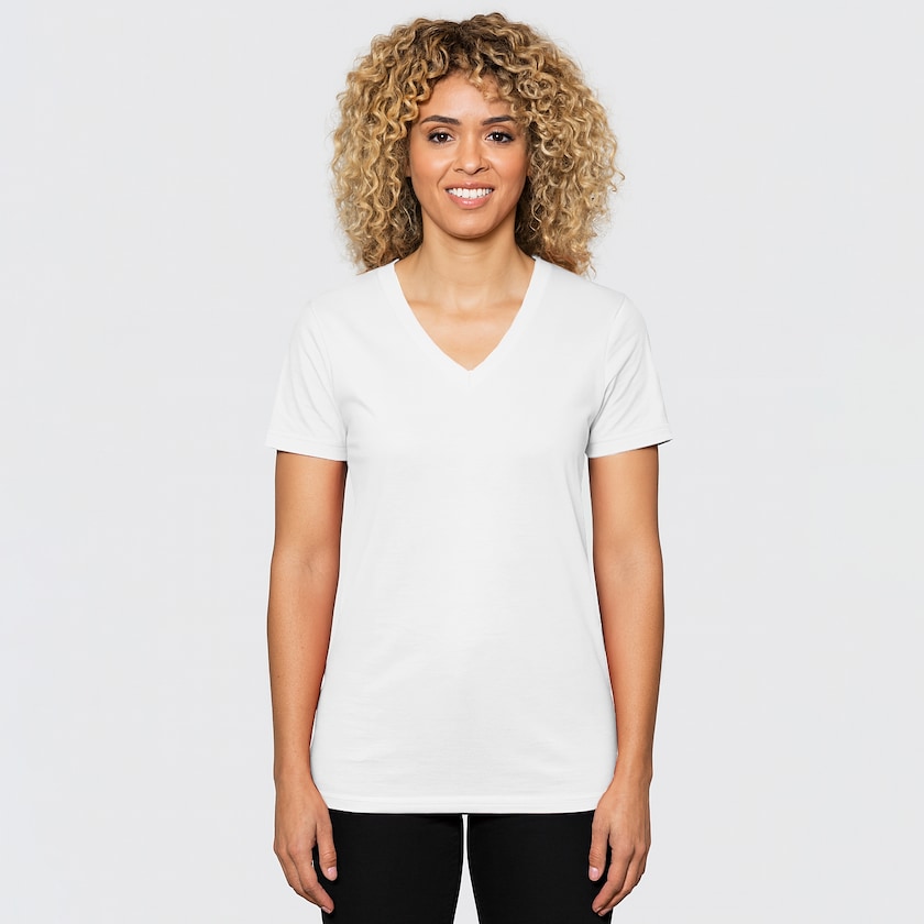Maglietta da donna con scollo a V di marca Elevate. Questa maglietta è realizzata in 100% cotone e per garantire un maggiore comfort ha il colletto a costine e l'etichetta stampata direttamente sul tessuto. Disponibile anche in versione da uomo.