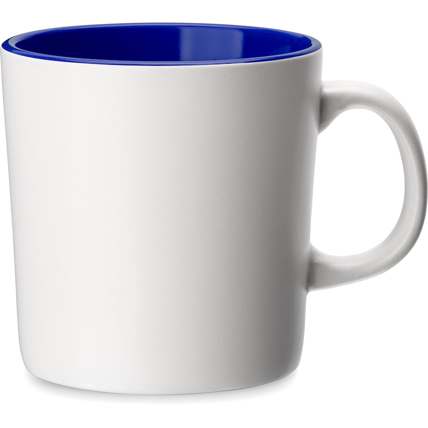 Tazza personalizzata con parte esterna bianca e opaca e interno colorato lucido. La stampa può essere effettuata all'interno, all'esterno, sul fondo o sul manico. Una bella tazza di ceramica resistente.