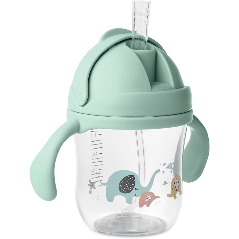 Tazza per bambini personalizzata. La tazza ha un pratico tappo con cannuccia pieghevole. Realizzato in tritano.
