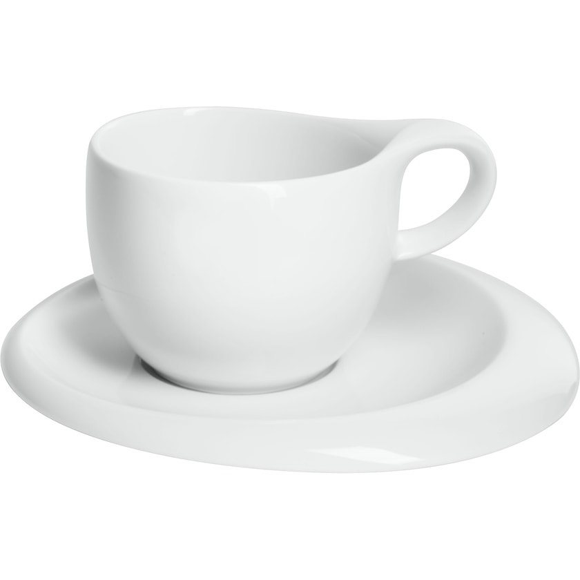 Tazzina da caffè dal bel design con piattino. Lira Café è realizzata in porcellana lucida. È delle dimensioni ideali per un caffè liscio o un cappuccino.