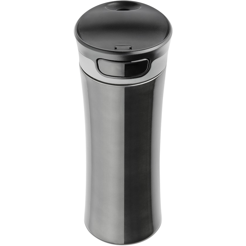 Tazza termica da 40 cl con un design moderno. Mantiene la temperatura fino a 10 ore. Il coperchio si apre con un pulsante speciale. La personalizzazione viene eseguita solo con l'incisione laser.