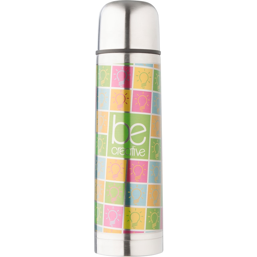 Thermos con stampa digitale. Una thermos perfetta per chi vuole creare un prodotto promozionale veramente unico. La thermos contiene 50 cl ed è realizzata in acciaio inossidabile.