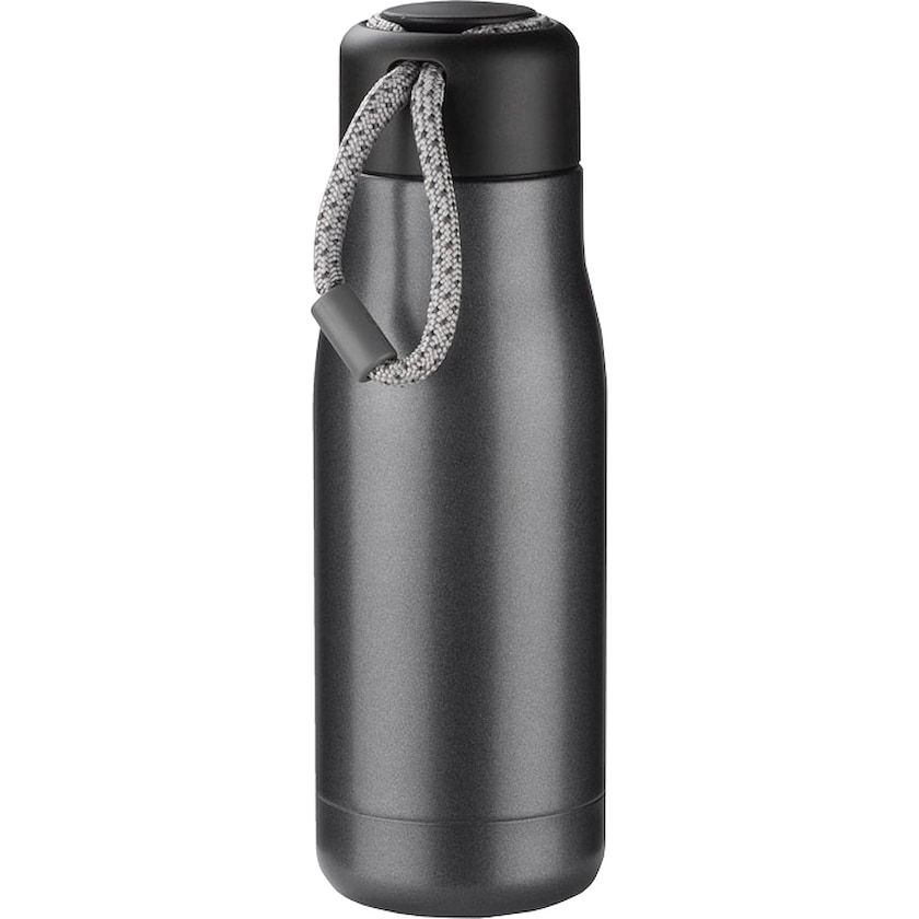 Elegante termos di alta qualità. Delano è dotato di pareti doppie che tengono le bevande al caldo per circa 12 ore. La borraccia è realizzata in acciaio inox, mentre il tappo è in plastica di qualità.