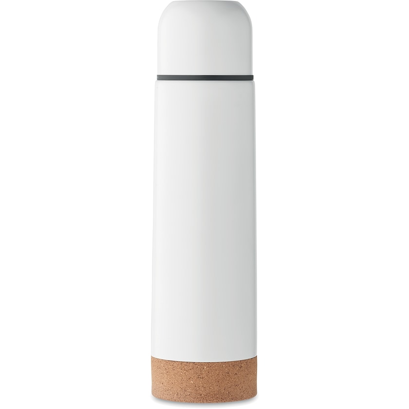 Thermos in acciaio inox riciclato con fondo in sughero. Chiusura completamente ermetica. Scegli tra stampa o incisione a laser.