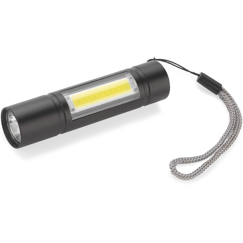 Pregiata torcia con tre modalità di illuminazione. Balfour può emettere luce fissa, luce intermittente o luce COB ultra intensa dal manico. Questa torcia è realizzata in metallo ed è dotata di batteria ricaricabile. Il logo viene inciso a laser.