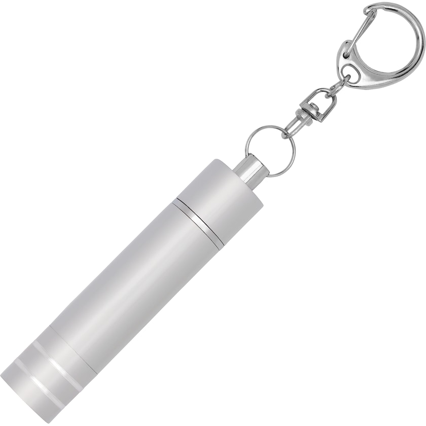 Portachiavi con lampadina LED. La lampadina è estraibile per fare ancora più luce. Batterie incluse. Il logo viene stampato o inciso a laser.