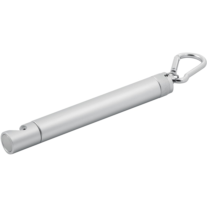 Torcia con lampada extra forte del tipo COB LED. La torcia ha anche un apribottiglie ed è dotata di moschettone e magnete. Alimentato da 5 batterie LR44 (incluse).
