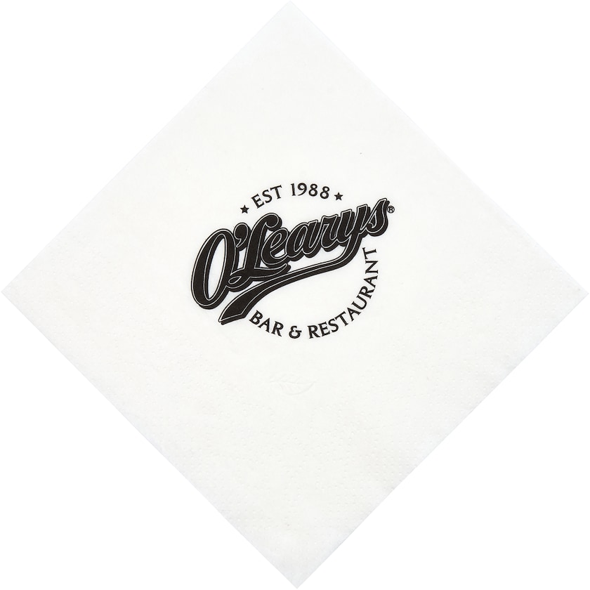 Tovaglioli da cocktail a 2 veli acquistabili a partire da piccole quantità. Ogni tovagliolo viene consegnato piegato in quattro e così misura 12 x 12 cm, mentre quando è disteso misura 24 x 24 cm. L'intero lato superiore è personalizzabile. Le dimensioni del tovagliolo si adattano perfettamente a bar e caffè che servono cibo leggero e bevande. Questi tovaglioli sono certificati EU Ecolabel, sono cioè realizzati in fibra riciclata proveniente al 100% da foreste gestite in modo sostenibile. Sono anche Food contact approved 4764801. I prezzi si riferiscono a unità da 1000 pezzi.