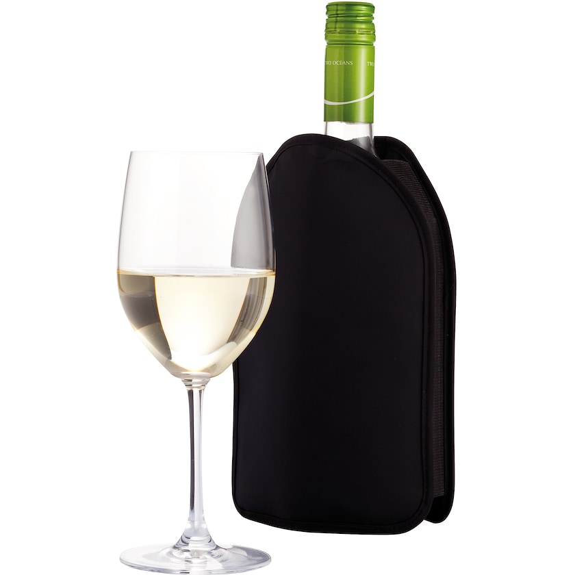 Elegante glacette nera per vino che mantiene le bottiglie alla temperatura giusta. Questa glacette occupa pochissimo spazio ed è facile da usare. Un bel regalo per tutti gli amanti del vino.