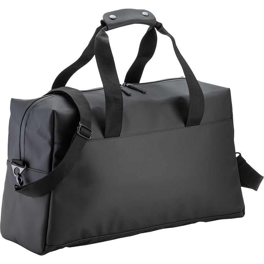 Borsa da viaggio impermeabile personalizzata. La cerniera è rinforzata per impedire l'ingresso dell'umidità. All'interno si trova una tasca più piccola con cerniera. La stampa è possibile a un solo colore.