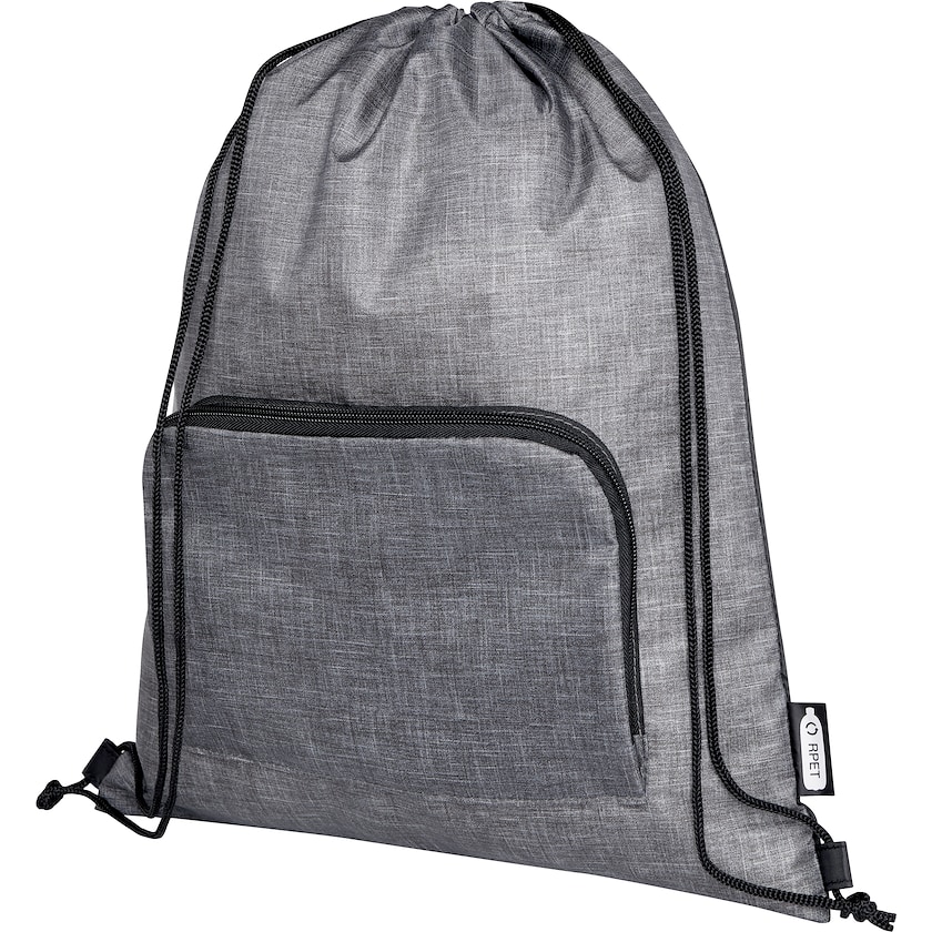 Sacca ecologica facile da arrotolare. Questa sacca è realizzata in poliestere riciclato. Sul davanti si trova una tasca che può essere usata anche per ripiegare la sacca stessa quando non viene usata.