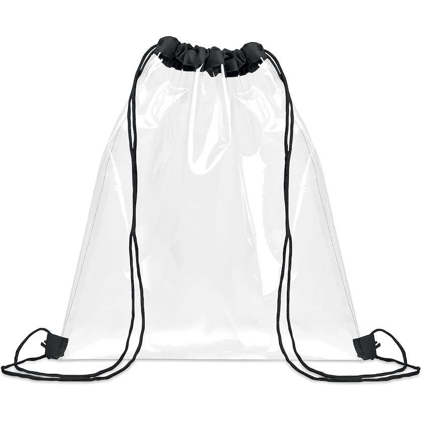 Sacca sportiva trasparente con dettagli colorati. Perfetta sia come sacca sportiva che come goodiebag.