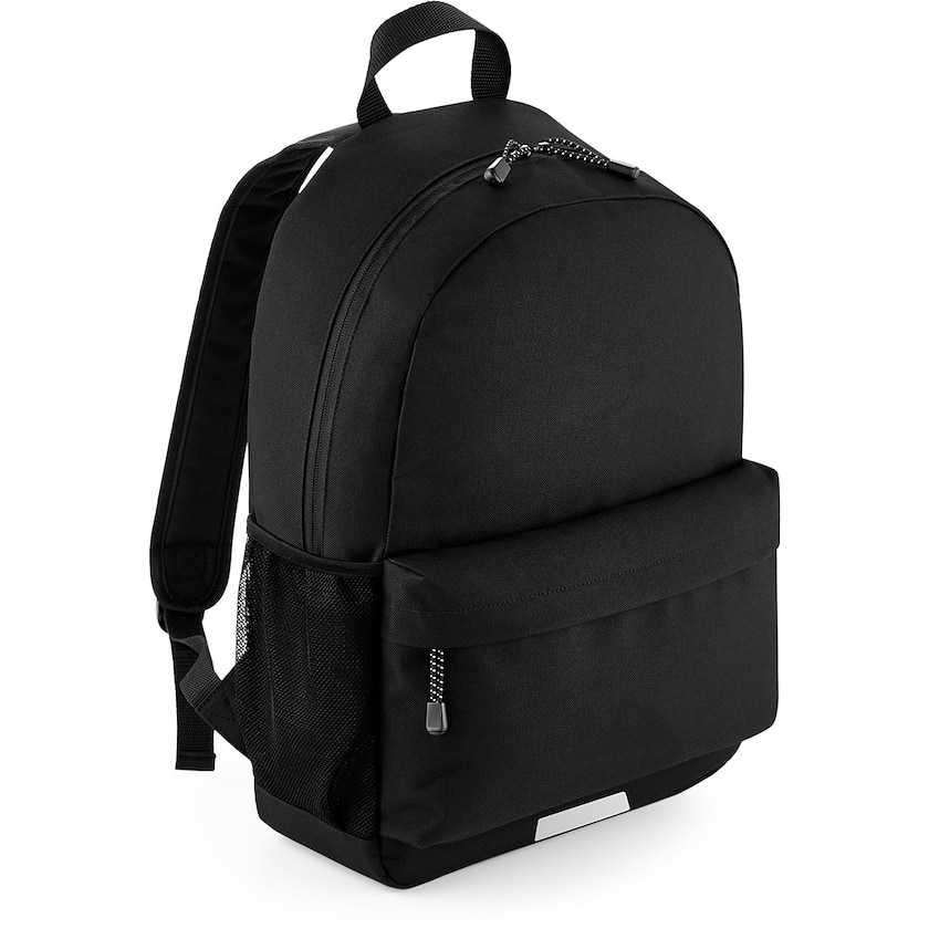 Zaino di qualità superiore con una tasca portaoggetti ampia sul fronte. Sui lati dello zaino si trovano delle tasche a rete per le bottiglette d'acqua e sotto la tasca frontale dispone di una striscia riflettente. All'interno ha un'etichetta per il vostro nome. Lo schienale e spallacci sono imbottiti per il vostro massimo comfort.