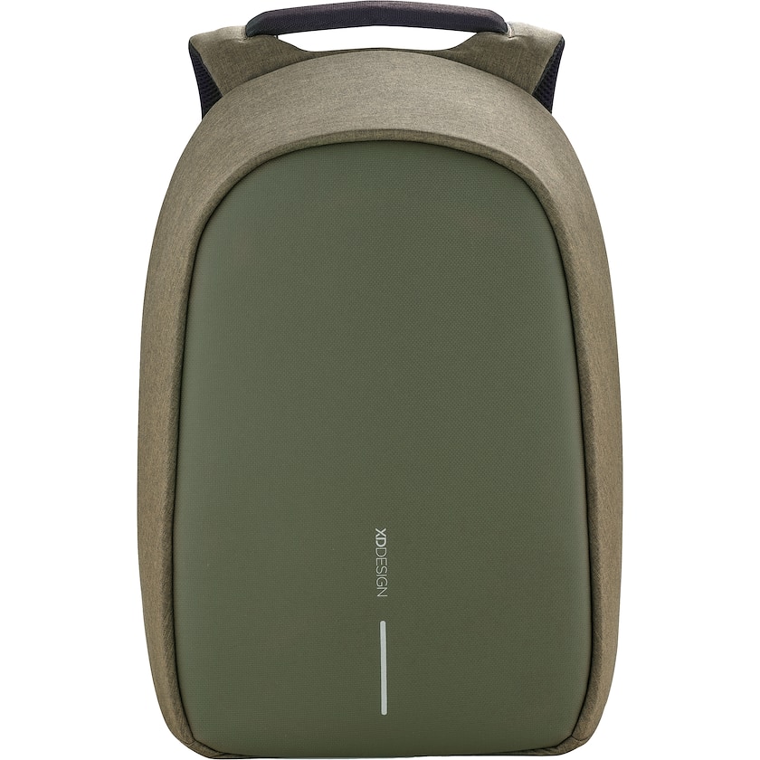 Zaino antifurto di prima qualità di XD Design. Lo zaino è realizzato in tessuto antitaglio ed è dotato di tanti scomparti e tasche nascosti. In più, vanta anche tante comode funzionalità come una porta di ricarica USB, il tessuto impermeabile e delle strisce catarifrangenti. All'interno si trova uno scomparto imbottito per PC da 15,6 pollici e per tablet da 12,9 pollici. Il tessuto è realizzato in rPET ecologico. Design registrato®.