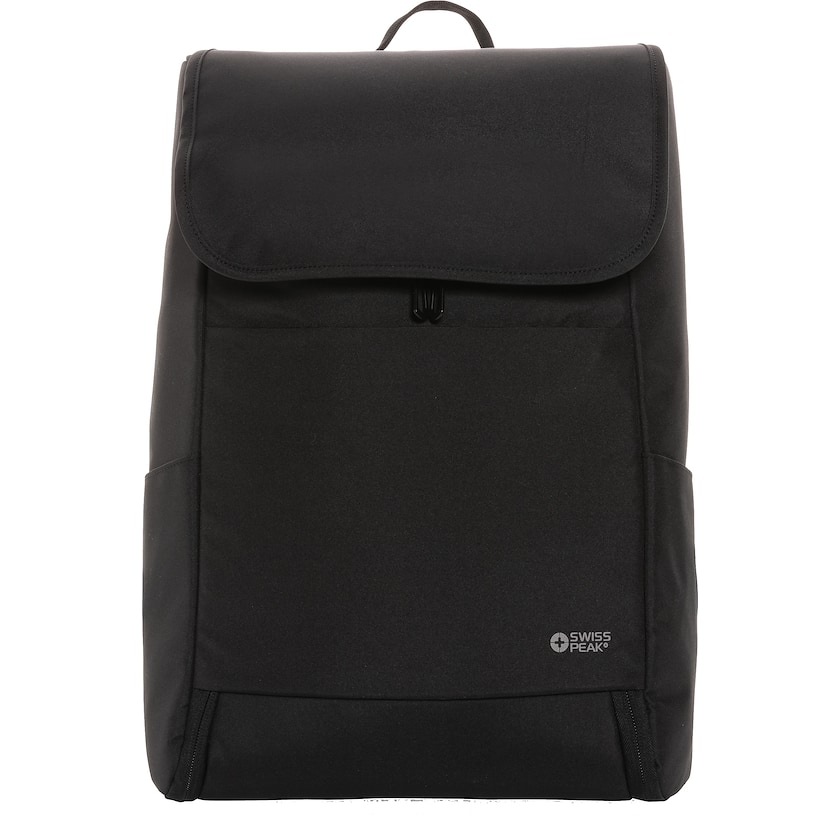 Zaino porta PC ecologico di Swiss Peak. All'interno si trova uno scompartimento imbottito per PC da 15,6 pollici. Lo zaino è realizzato in 100% poliestere riciclato.