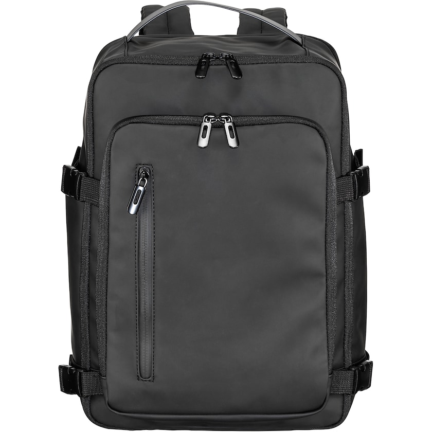 Zaino porta PC con tessuto resistente all'acqua. All'interno si trova uno scomparto imbottito per un PC da 15 pollici. Lo schienale e gli spallacci sono imbottiti e realizzati in materiale traspirante per un aumentare il comfort. Può essere attaccato a un trolley.