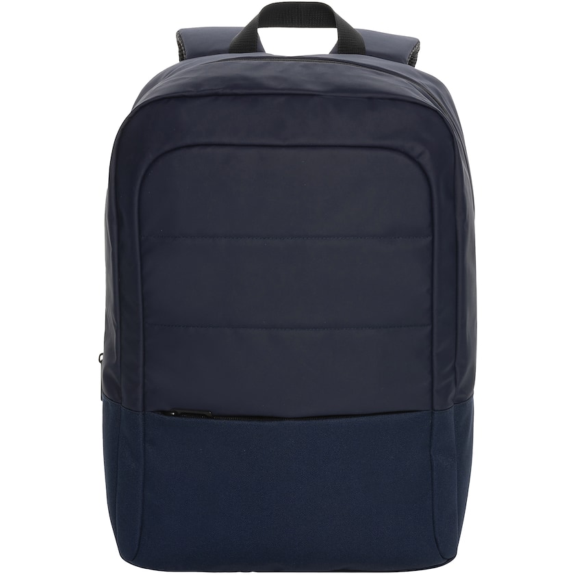 Moderno zaino porta PC in poliestere riciclato. All'interno si trova uno scompartimento imbottito per un PC da 15,6 pollici. Uno zaino dal bel design e di alta qualità.