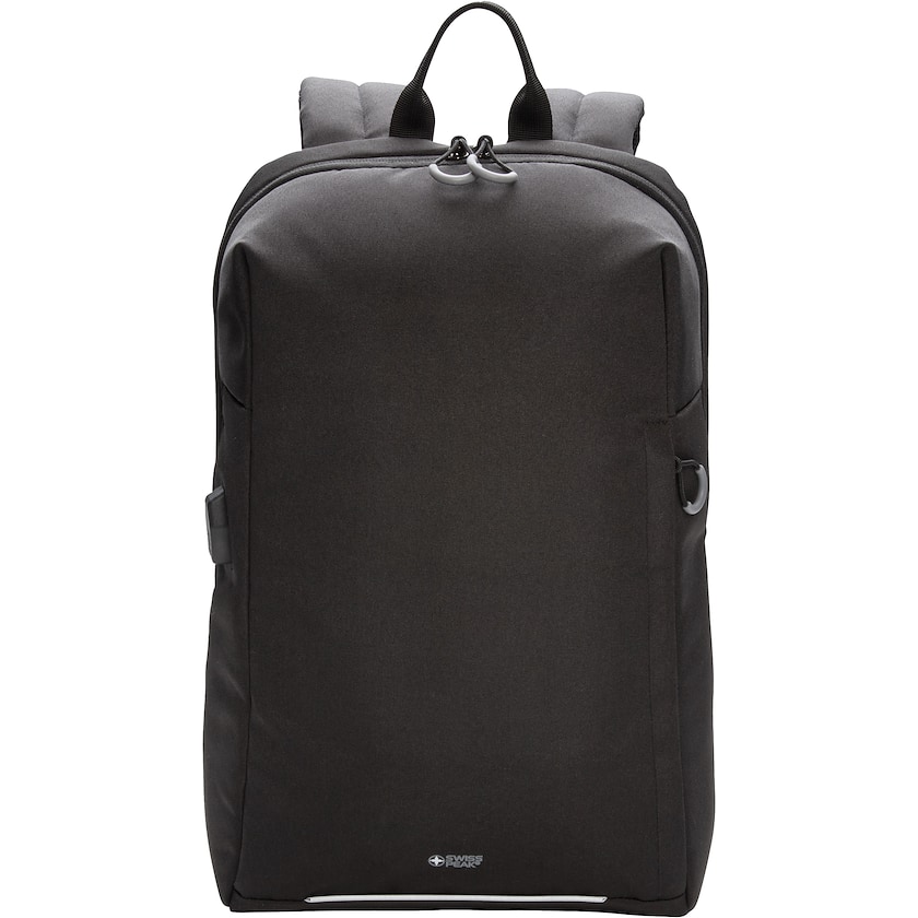 Elegante zaino porta PC dal pratico formato. Questo zaino è realizzato in rPET, ossia in bottiglie di PET riciclate. All'interno si trova uno scomparto imbottito per un PC da 15,6 pollici. Questo zaino è dotato di un catarifrangente sul davanti e di una tasca con protezione RFID sul lato.