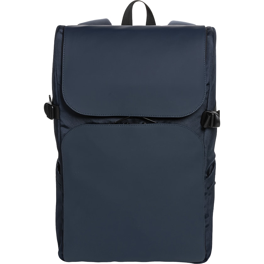 Pratico zaino porta PC in poliestere riciclato. All'interno si trova uno scomparto imbottito per un PC da 15,6 pollici. Lo zaino ha una serie di pratiche tasche e scomparti che rendono lo zaino super funzionale.