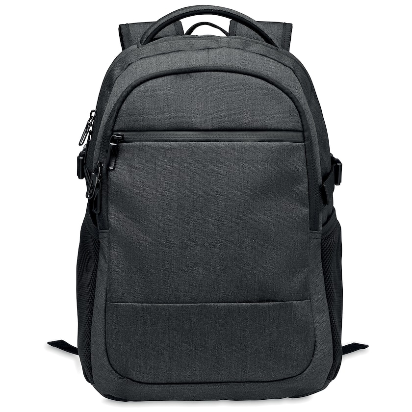 Zaino ecologico per PC da 15 pollici. Lo zaino è realizzato in rPET, ovvero in poliestere riciclato. Sui lati si trovano due tasche a rete. Lo schienale è imbottito e traspirante. Gli spallacci sono imbottiti.