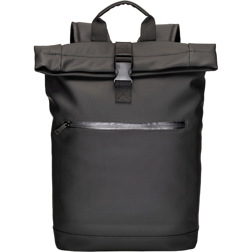 Zaino roll-top impermeabile personalizzato. All'interno si trova uno scomparto imbottito per un PC da 15 pollici. La cerniera è rinforzata per impedire l'ingresso dell'umidità. Stampa a un solo colore.