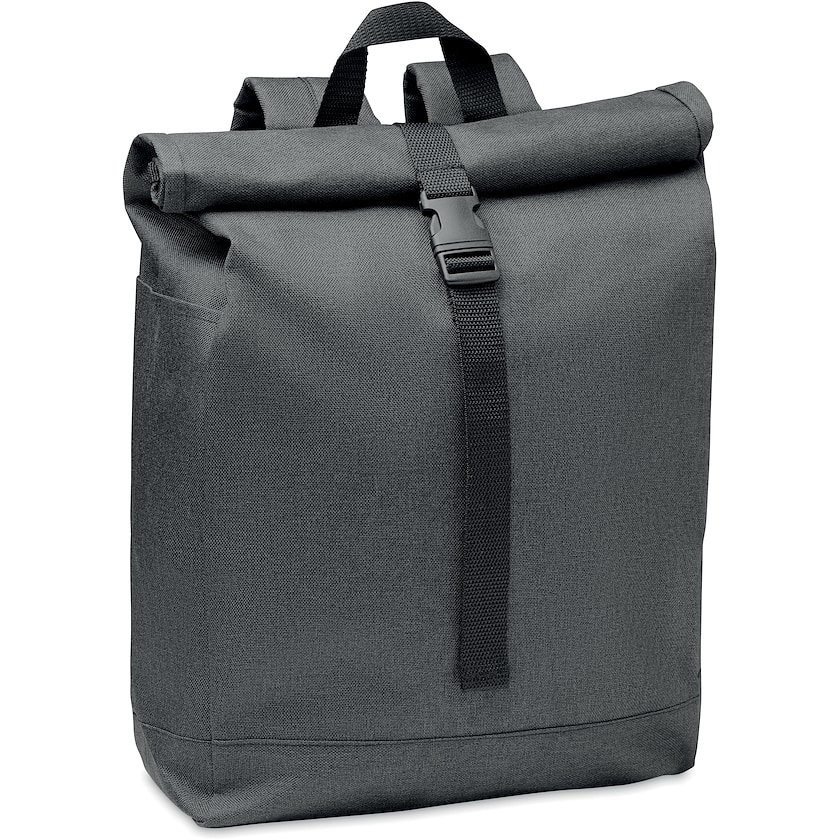 Zaino ecologico con chiusura roll-top. Lo zaino è realizzato nel materiale ecologico rPET, che viene prodotto a partire da bottiglie in PET riciclate. Ecco un bello zaino di design che fa anche bene all'ambiente.