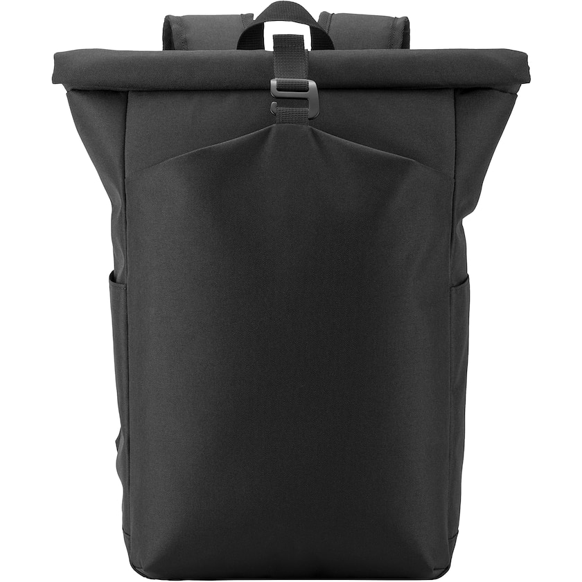 Conveniente zaino roll-top personalizzato. Lo zaino ha uno scomparto per PC da 15 pollici. Sui lati si trovano tasche per borracce. Lo schienale e gli spallacci sono comodamente imbottiti. La stampa può essere realizzata in un solo colore.