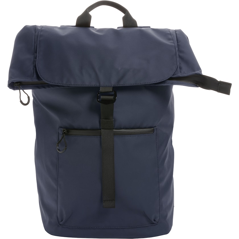 Zaino porta PC impermeabile in materiale ecologico. All'interno si trova uno scomparto imbottito per laptop da 15,6 pollici. Sia il tessuto esterno che la fodera sono in rPET, ossia in bottiglie di PET riciclate. Lo schienale e gli spallacci sono comodamente imbottiti. Lo zaino ha anche una chiusura speciale che impedisce all'acqua di passare. Sul davanti si trova una tasca con cerniera impermeabile.