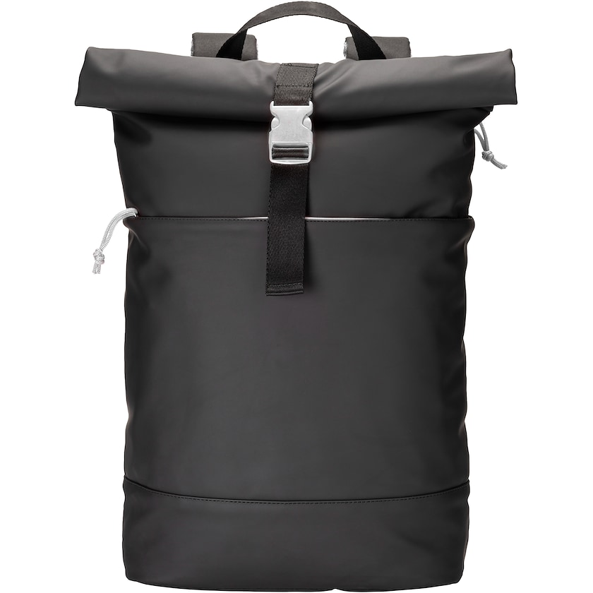 Zaino roll-top impermeabile personalizzato. All'interno si trova uno scomparto imbottito per PC da 15 pollici. Sul davanti si trova una piccola tasca dotata di cerniera, mentre all'interno si trova un'apposita tasca per borraccia. È solo possibile la stampa a un colore.