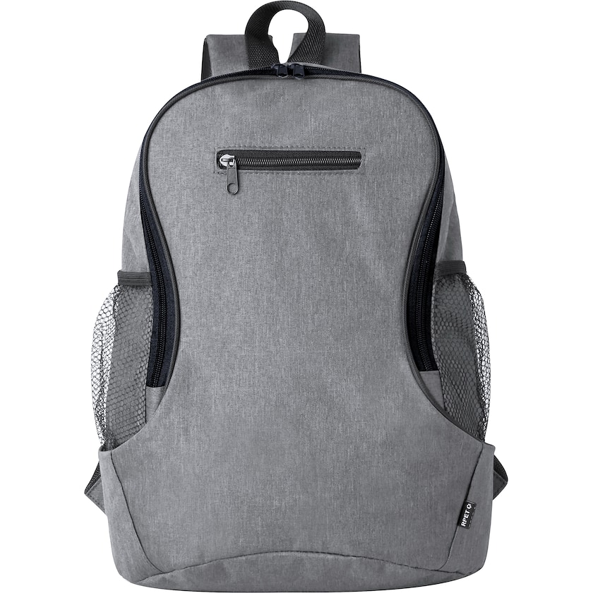 Zaino ecologico personalizzato a un prezzo conveniente. Lo zaino è realizzato in rPET, ovvero bottiglie PET riciclate. Lo schienale e gli spallacci sono comodamente imbottiti. Sui lati si trovano tasche a rete.
