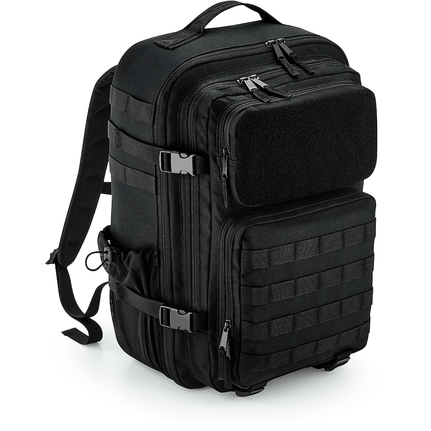 Zaino resistente e robusto. All'interno si trovano uno scomparto imbottito per laptop di dimensioni fino a 17 pollici e vari tipi di tasche a rete. Sul davanti si trovano tre tasche dotate di cerniera. Lo zaino è provvisto di cinghie di compressione e di un cinturino all'altezza del torace.