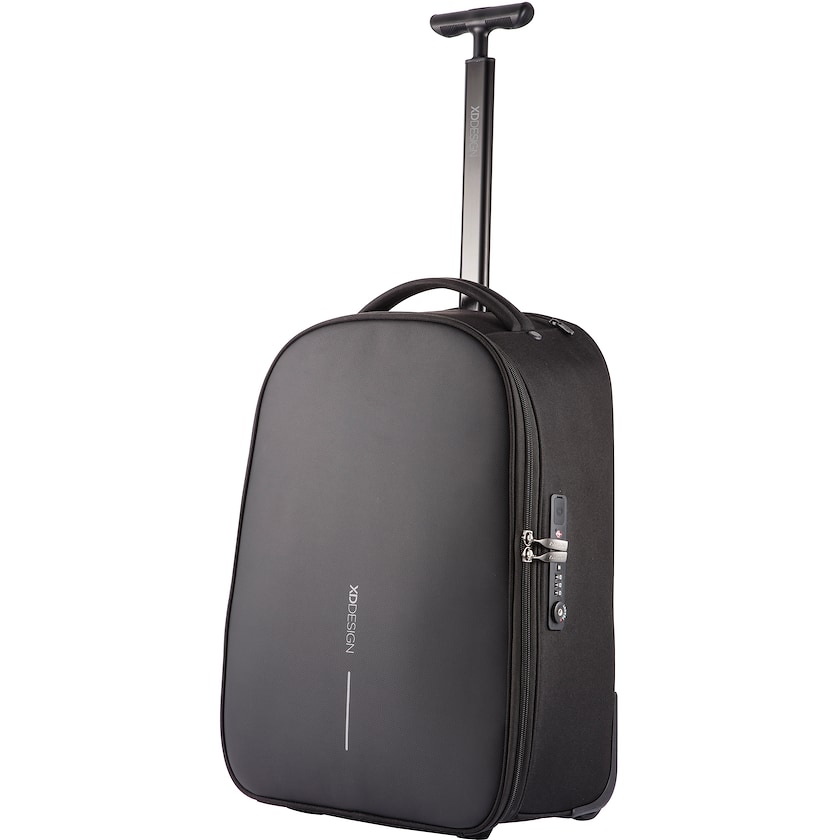 Zaino trolley ecologico con antifurto. Lo zaino è realizzato in rPET, ossia in bottiglie di PET riciclate. Funge sia da trolley che da zaino ed è perfetto per i viaggi più brevi. Quando viene usato come trolley è possibile nascondere gli spallacci; quando invece viene usato come zaino si possono nascondere le ruote. Lo zaino è dotato anche di una protezione antifurto all'avanguardia. Design registrato®.
